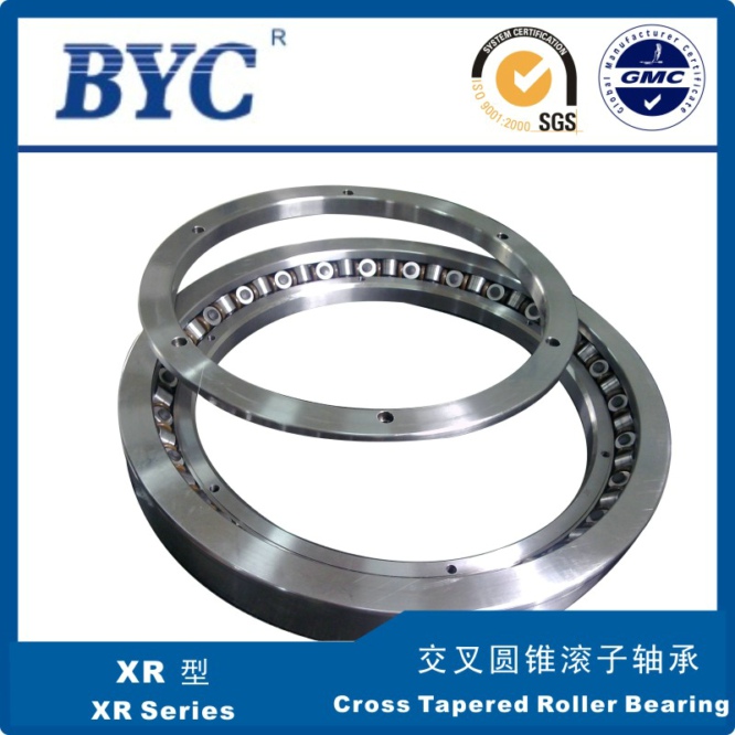 交叉圓錐滾子軸承內部結構采用滾子呈90°相互垂直交叉排列(這也是圓錐滾子軸承的名稱由來),滾子之間裝有間隔保持器或者隔離塊,可以防止滾子的傾斜和滾子之間相互摩擦,有效防止了旋轉扭矩的增加。另外,不會發生滾子的一方接觸現象或者鎖死現象;同時因為標準型圓錐滾子軸承內外環是分割的結構,間隙可以調整,即使被施加予壓力,也能獲得高精度的旋轉運動。