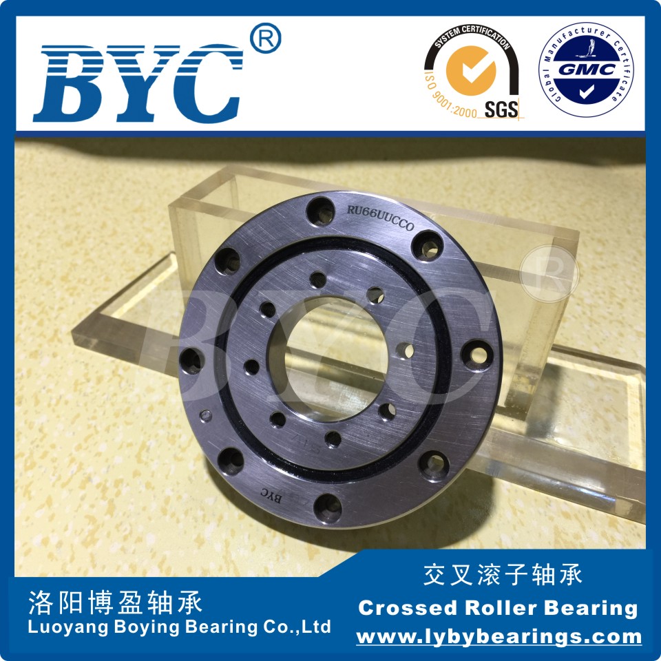 BYC-交叉滾子軸承 是兩列圓柱滾子在呈90度的V形滾道上通過尼龍隔離塊被相互垂直交叉排列,所以交叉滾子軸承可承受徑向負荷、軸向負荷及力矩負荷等多方向的負荷。內外圈的尺寸被小型化,極薄形式更是接近于極限的小型尺寸,并且具有高剛性,BYC博盈交叉滾子軸承精度可達到P2級。因此適合于工業機器人的關節旋轉部、機械加工中心的旋轉臺、精密旋轉工作臺、醫療機器、計算器、IC制造裝置等設備。